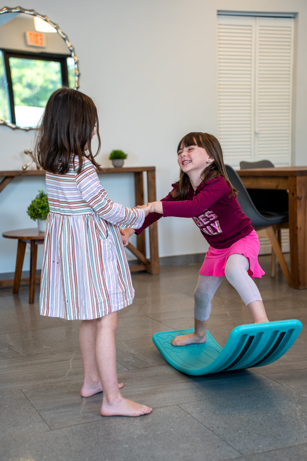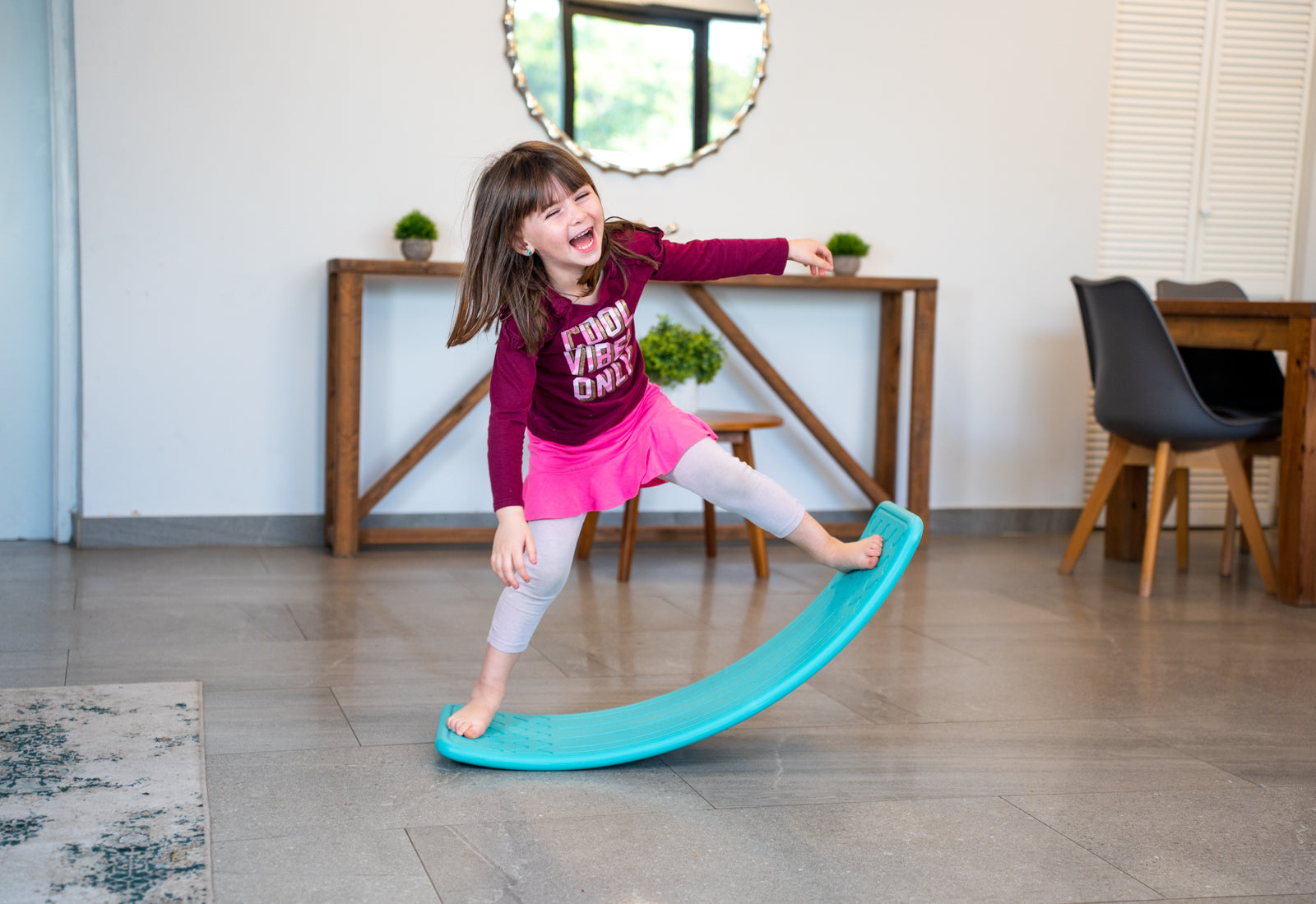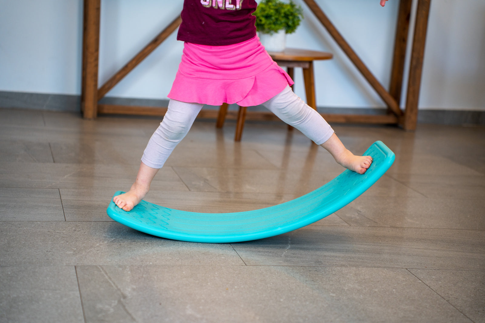 The Bintiva balance toy can be used as a huge balance board, bridge, balance step, slide, and much more. It encourages children to use their imagination and improves developmental, social, and emotional skills.