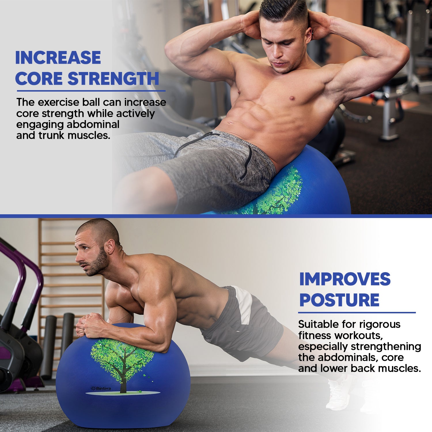 • CORE STRENGHTH AND POSTURE - The exercise ball can increase core strength and improve posture while actively engaging abdominal and trunk muscles.
