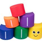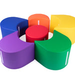 Children can lie across the bench or sit on individual modules to relax, play, or engage with peers. This soft seating area promotes visual-motor coordination, social interaction, and the development of gross motor skills.