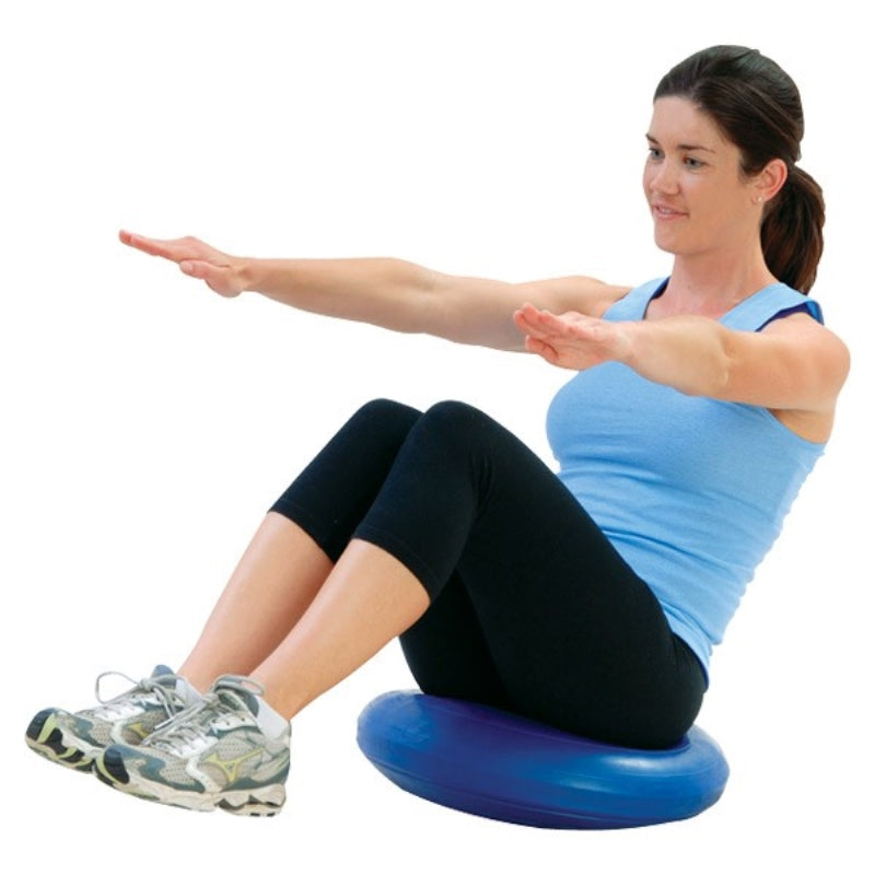• Ships inflated, includes a hand pump for adjustments. Stability disc size: 13 inches / 33 cm diameter