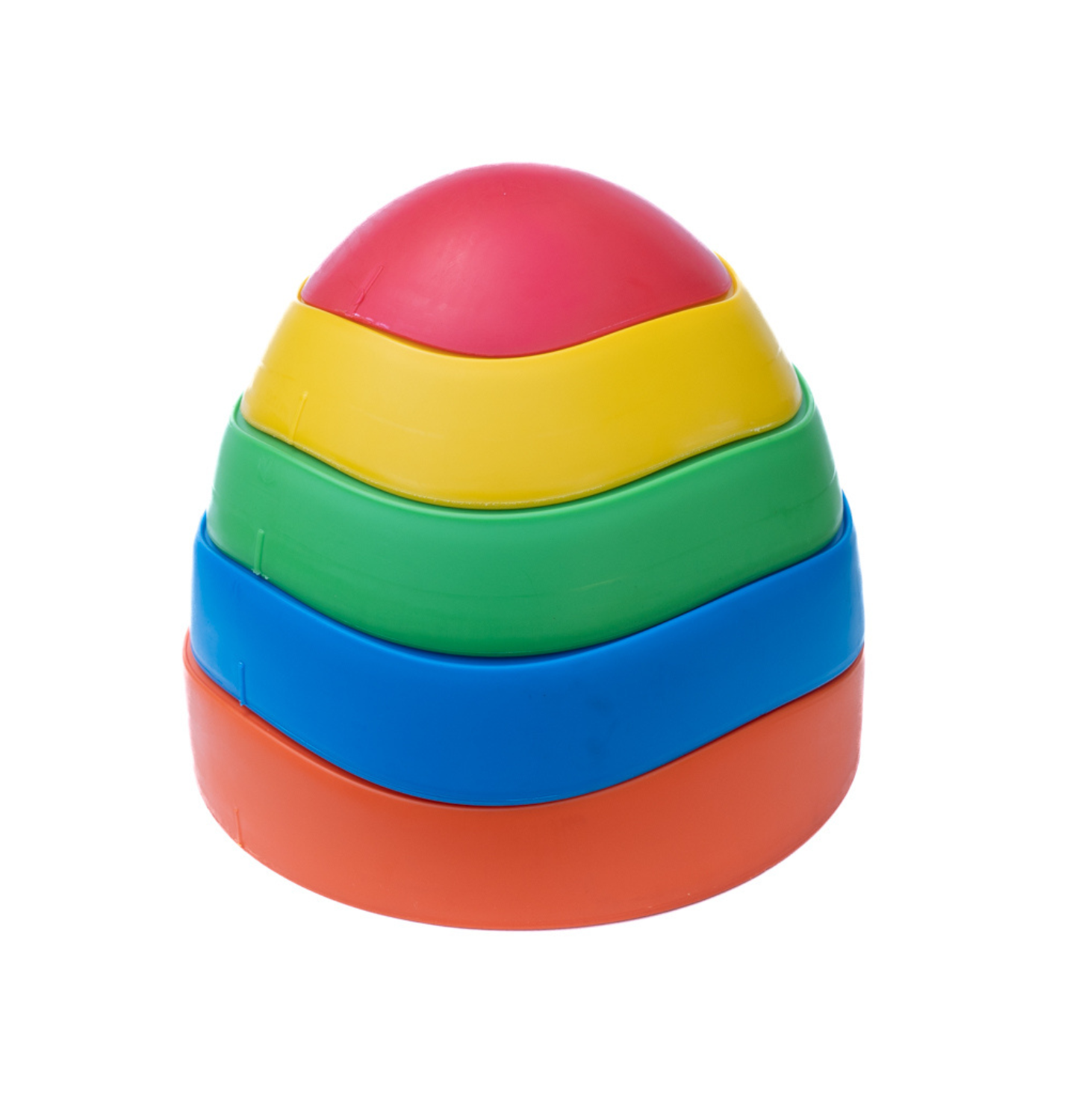 This five piece stepping stone set, is a versatile product that can be used both indoors and outdoors. It is used to challenge balance, encourage motor planning, and enhance creative play. It is constructed from heavy duty plastic and features rubberized bottoms that will grip the floor. The stones vary in size and stack into each other for easy clean up. This product can be used for a variety of ages. Toddlers can crawl over the obstacles and learn how to navigate their way safely. Preschoolers can used this to climb on and over, as well as step from stone to stone in a path. At any age, it can promote motor skill acquisition, spatial orientation, and balance.